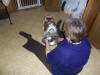 antibiotics for both. He's now at his foster home in Bartlett, TN. He wasn't here more that an hour when Elaine said she'd changed his name. He's now being called Duke. She said that Butter was not a guys name and he acts so regal, so Duke it is. He can only hear high pitch noises, so it doesn't really matter. He continued his antibiotics until they were out. We took him to the vet here and all infections are cleared up. His diabetes is under control, he's now getting 1 cup of Merrick's Grammy's Pot Pie kibble and 9 units of insulin twice a day. He's gained a couple of pounds already and is slowly learning his way around the house. We've found that his sight, like is hearing is extremely limited. In bright light, it seems he can see shapes and movement. His diabetes was finally was stable and he's infection clear, so he made a trip to the vet to get his teeth cleaned. Besides having an extreme buildup of tartar, he lost 6 teeth. It hasn't slowed down his eating any and his breath is sooo much better. We now have another failed foster. This time instead of me, it was my wife. She fell in love with him, so he won't be going anywhere. :-) We've got his weight and diabetes under control. He's also had cataract surgery on both eyes. What a difference. You wouldn't think he's the same dog now that he can see.