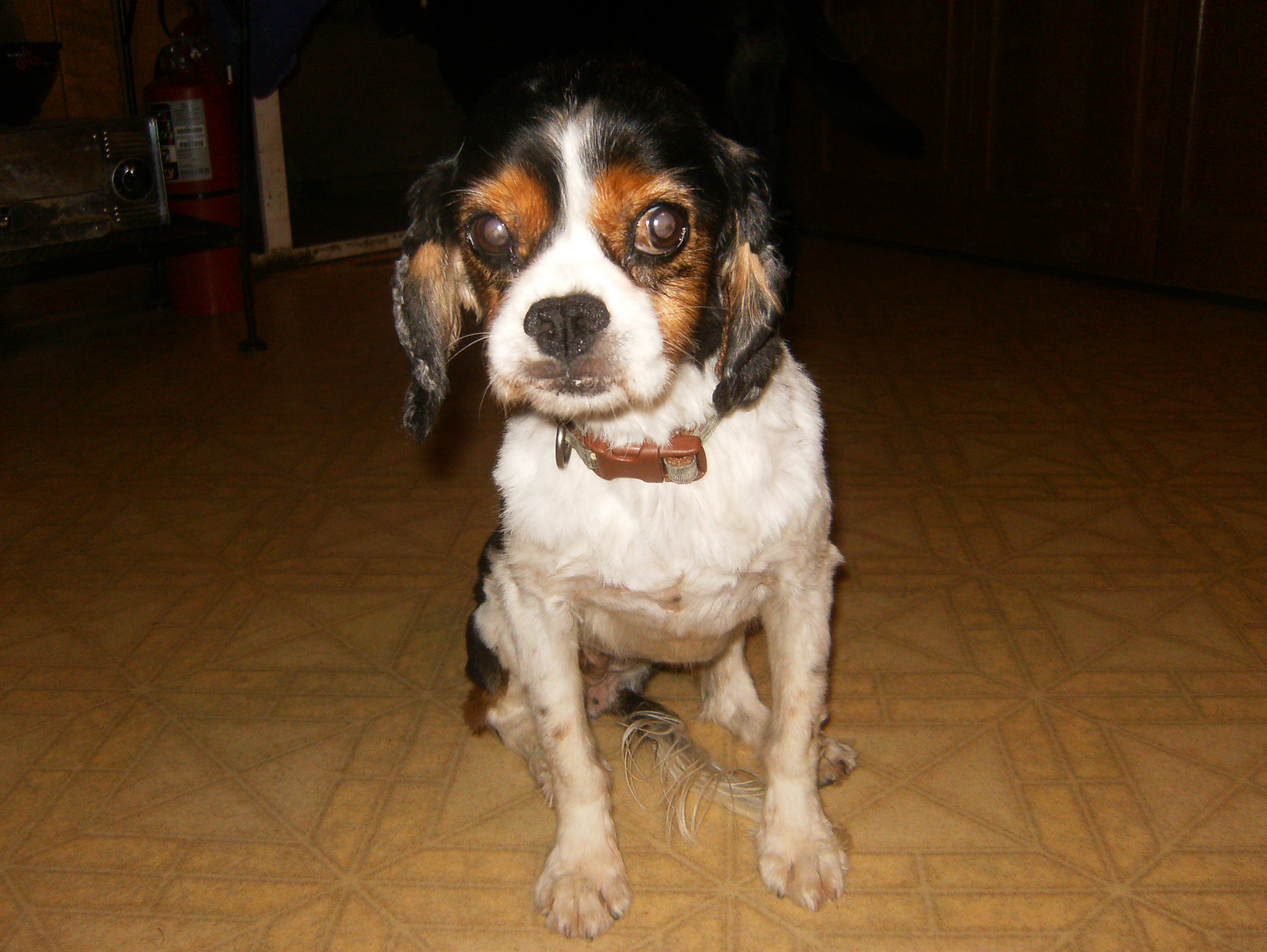 Katie is a sweet 12-year old Tri-color owner turn-in. We rescued her because, even with her age, we think she deserves a chance at life - even if it's short. Katie came into rescue severely underweight due to her diabetes. We took her to our vet and had a full blood panel run. It came back that her dosage was too high and her blood sugar was bottoming out. We've started taking her blood sugar several times a day to keep track of her insulin amounts. She also needs to have her teeth cleaned, but that will wait until her glucose level is under control and she gains some weight. She's been spayed and up to date on all her shots. Katie has settled in very well. She's found her place which is on a mat next to our son's bed. She comes out to do her business, eat and socialize, then goes back there to lay down and rest. She's slow moving, but does get around very well. She is aggressive with her food, but is very laid back any other time. We've been making daily visits to the Vets office. The initial dose of insulin was too high, so it's been gradually cut back. Currently she is not on any insulin injections. She is on the Hill D/W, which is a food for diabetic dogs. The Vet thinks that food may be all she needs. With a 2 unit injection of insulin twice daily, her glucose was still in the 65 range. It should be at least 80. We'll hope and see. Change to the change as far as her insulin and food goes. While on the Hills D/W, she kept losing weight, even though her food intake had doubled. She’s currently getting 1 cup of Merrick Grammies Pot Pie Kibble twice a day with 7 units of insulin. With this combination, she’s gained 1 ˝ lbs and her glucose is under control. This is an ongoing thing. If her food, the quantity of it, or exercise level changes, her insulin will have to be adjusted to keep her glucose level where it needs to be. Her glucose level is stable, she's gained weight and her gum infection is cleared up, so, she made a trip to the vet. She lost 6 teeth and had the rest cleaned. She's doing great and still eating like a typical cavalier. She is currently being fostered in Bartlett, TN. NOT. We've got another failed foster. She's here with us permanently now. Everything's stable and she'll remain here until she goes to the rainbow bridge. After a couple of years with us, her health has deteriorated considerable. She's lost sight in both eyes due to cataracts. Do to her age and health, they won't operate on them. She's partially deaf in bother ears, has trouble walking due to her back legs not staying under her. She also has sever incontinence and usually wakes up wet from urine. We had her tested for a UTI with negative results. So she has been put on medicine to help with the incontinence. Her health has continued to deteriorate so that she is unable to use her back legs to walk without falling over. She also has lost all control of her bladder and bowels, plus she has no interest in eating, not even the good stuff. After a couple of weeks of this and her continuing to lose weight, we took her to the vet and had her put to sleep. Rest well Katie and we hope to see you at the Rainbow Bridge.