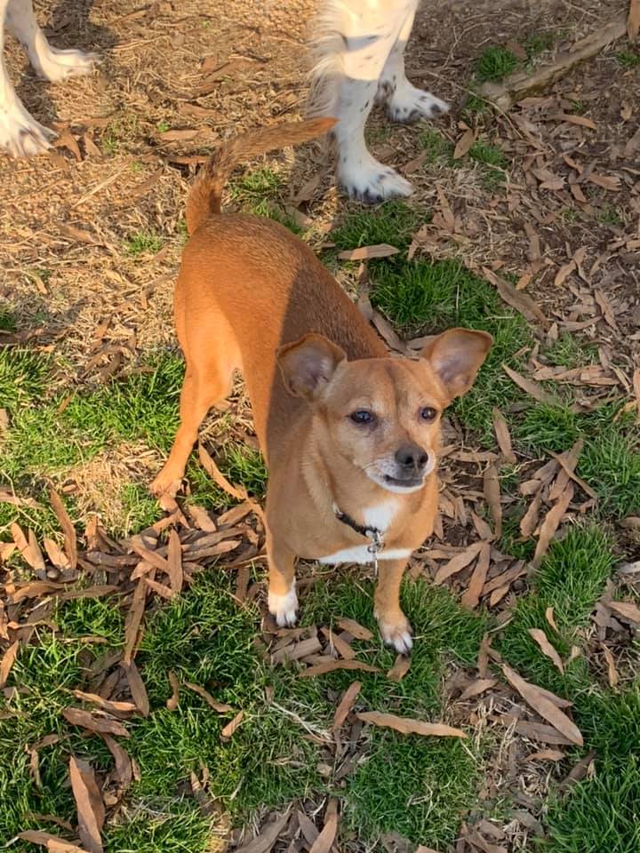 MindyLou is a tan Chiweenie (Chihuahua Dachshund mix) that is approximately 2 years old. She came to us for care after she was attacked by another dog and extremely scared of people.
