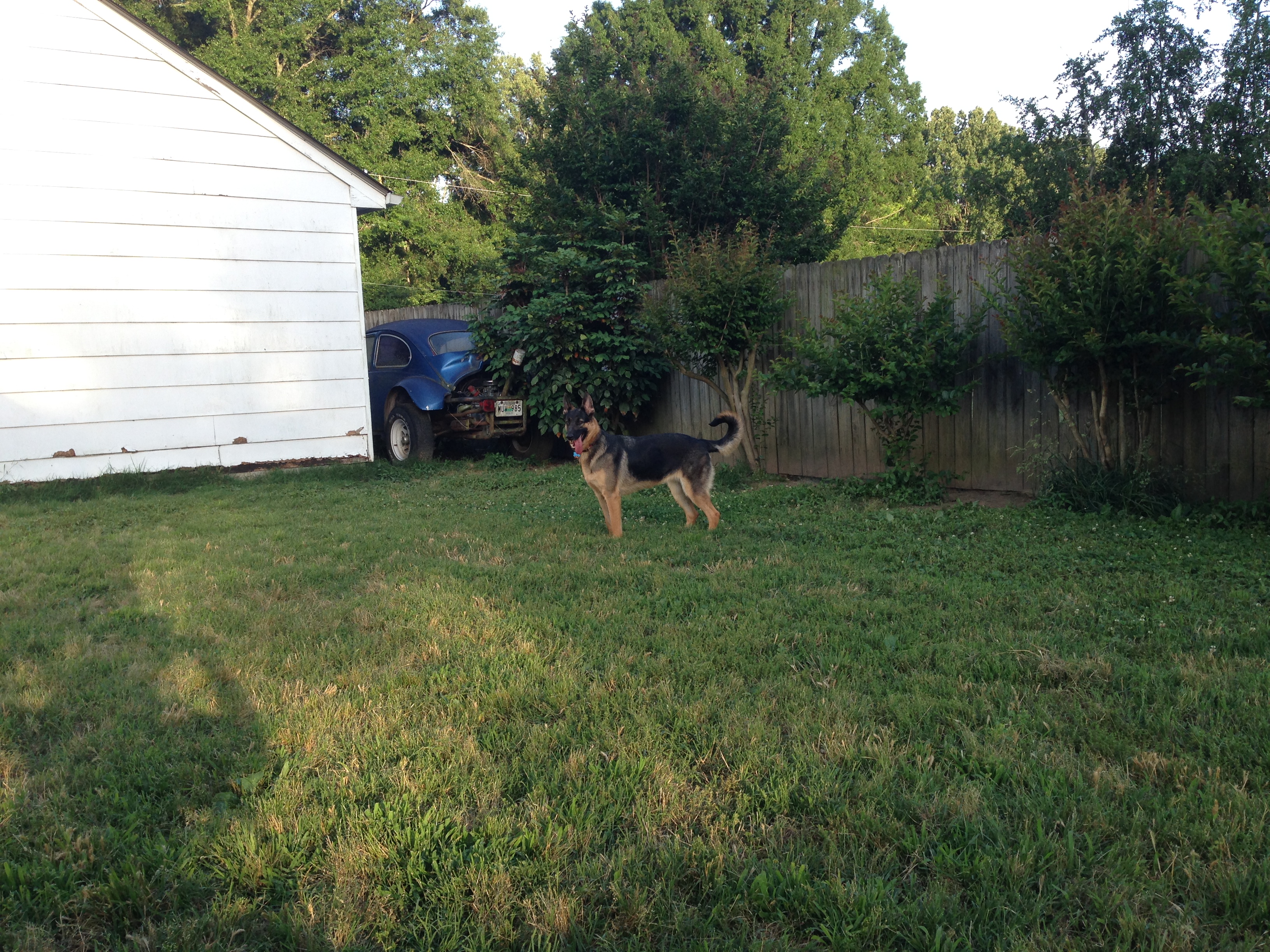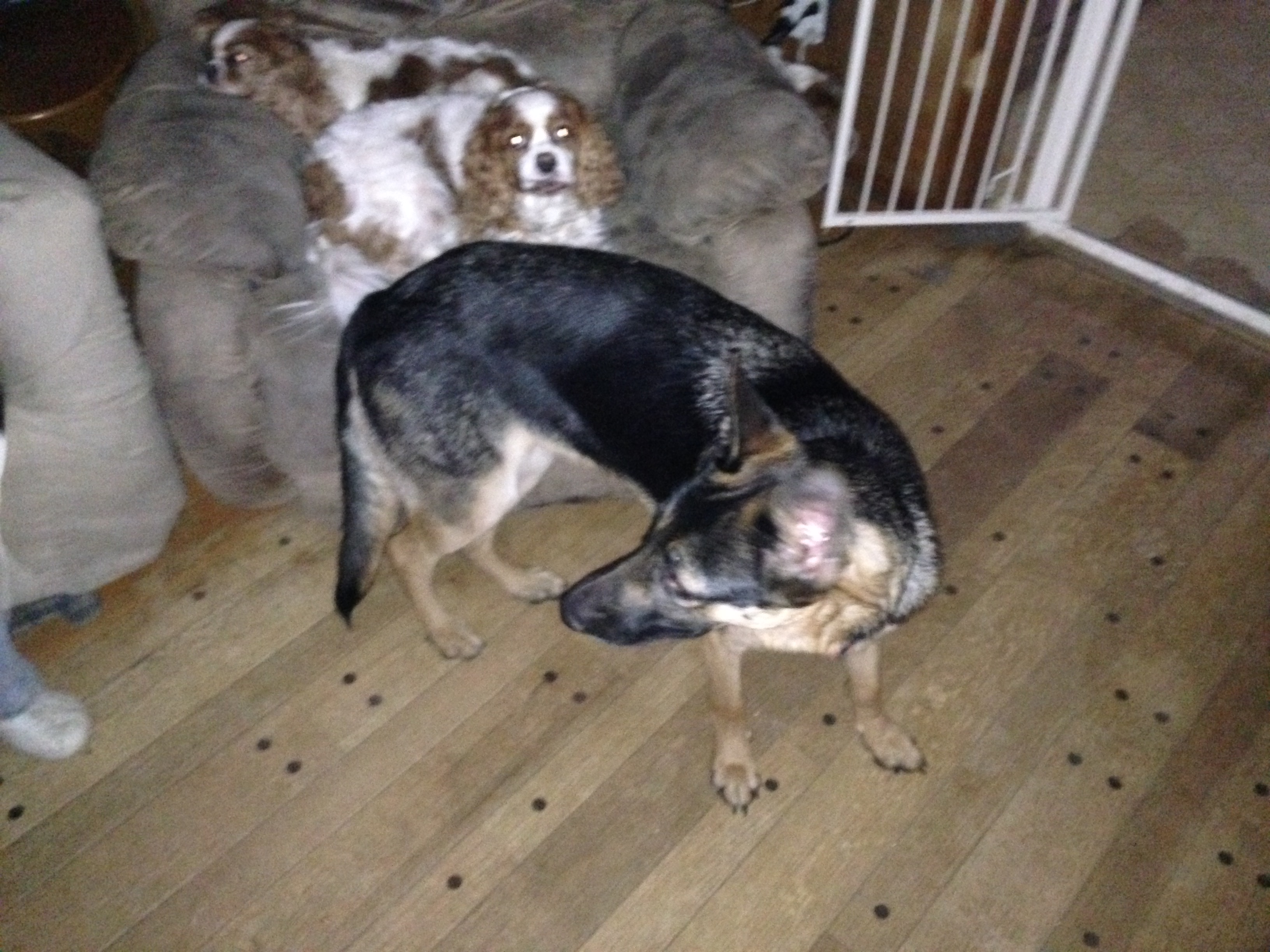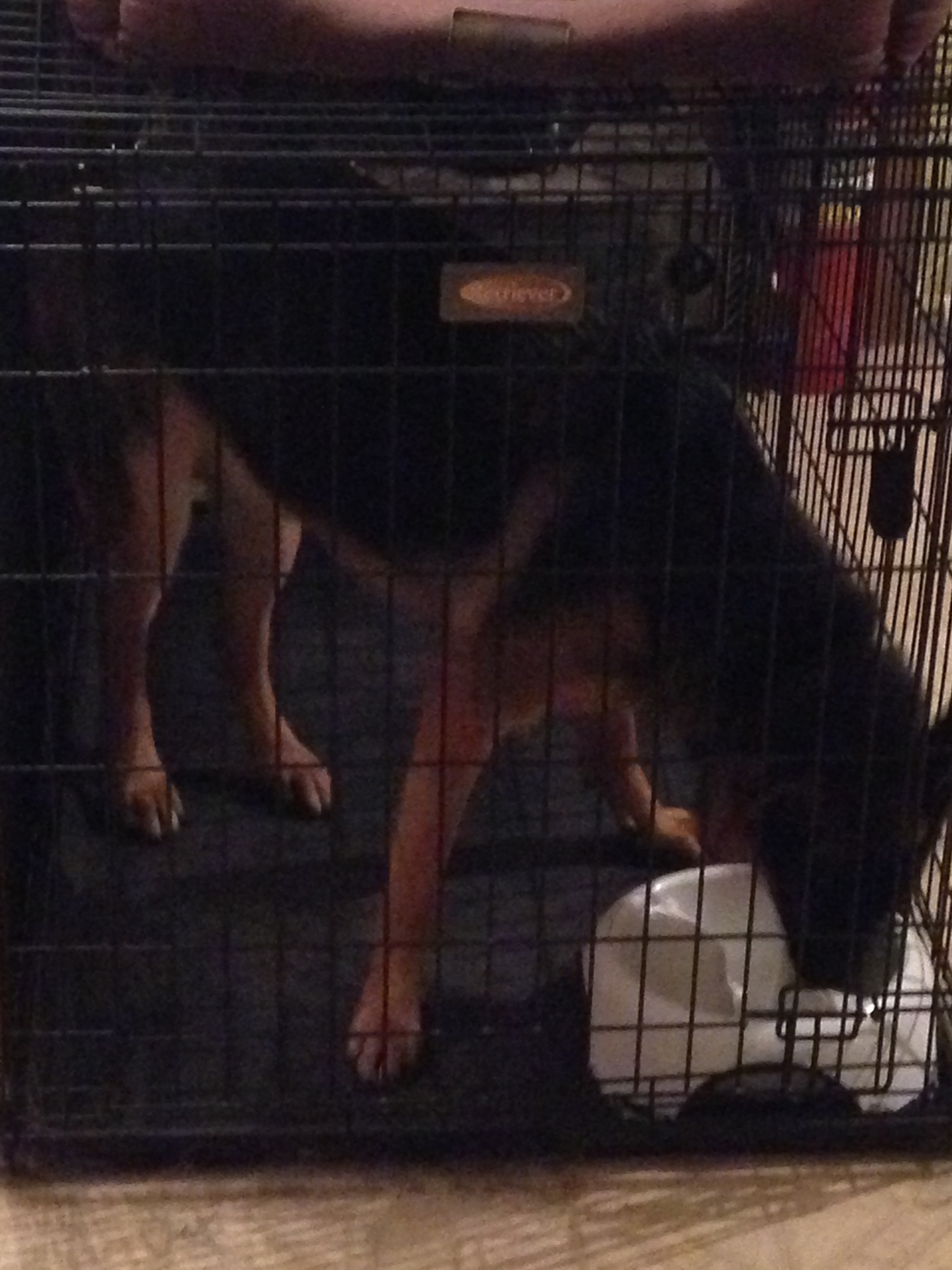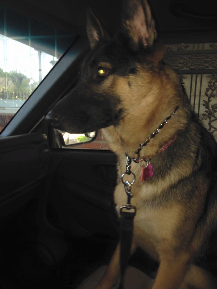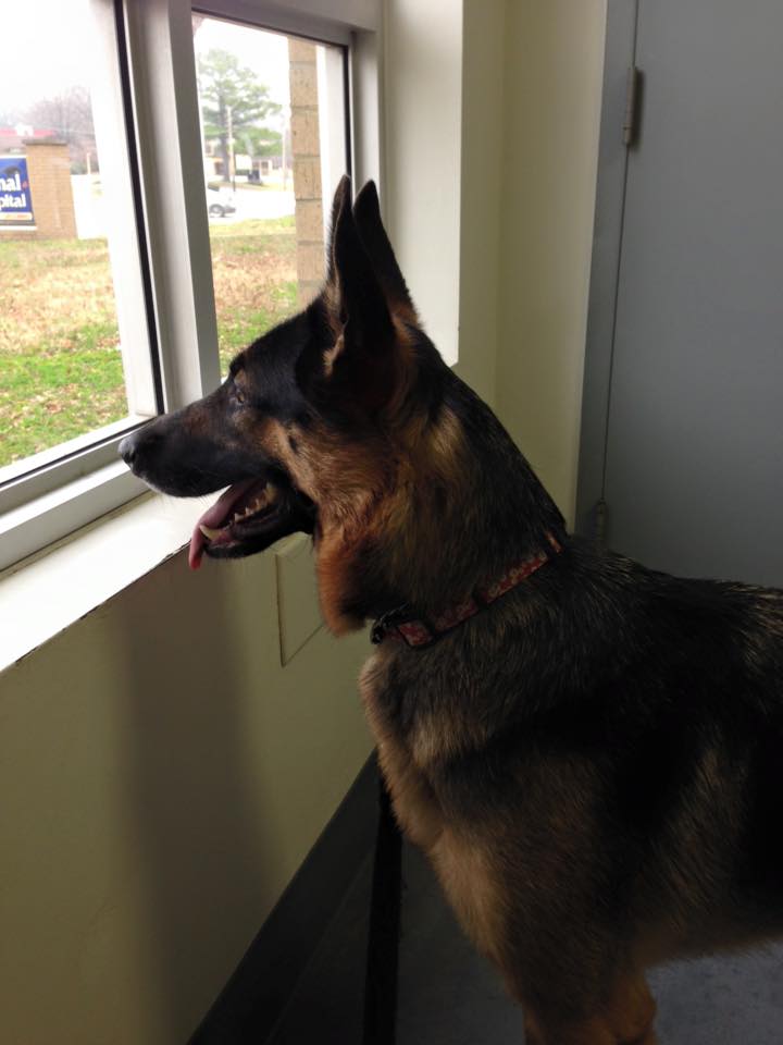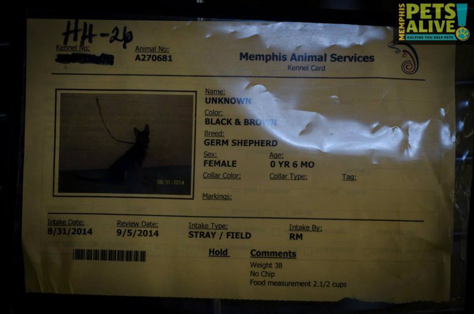 Alley is a dark colored female German Shepherd that we've adopted from the Memphis Animal Shelter. We adopted her over a week ago and still are unable to bring her home. She had to remain to get spayed. She's still there and it's been 8 days and we're still waiting. We even are willing to sign a form and take her to our vet, but they said no. Here's the only pictures we've got of her so far. We finally picked her and 2 of her brothers up on the 9th day after we adopted her. Her brothers are here only overnight. They'll be picked up tomorrow and head to their forever homes. Her brothers were picked up. She's seemed lost for the last couple of days, but is slowly starting to get settled in. She's still skittish with people, but does fine with all the dogs. She's settled in well. Has been to puppy training and some intermediate obedience classes.